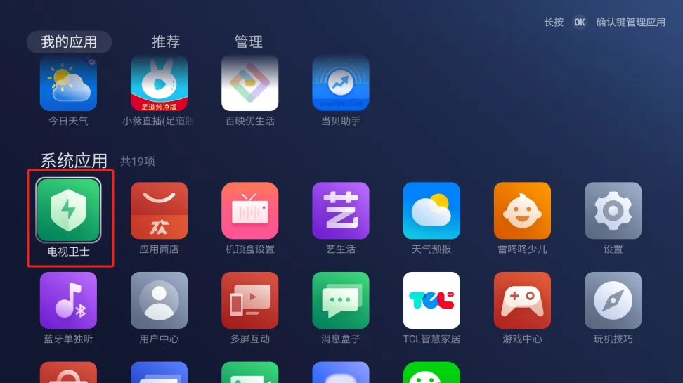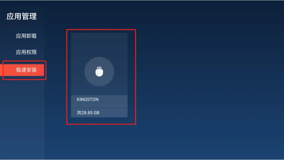 4.在电视卫士中,点击【应用管理】-【极速安装】,点击U盘。