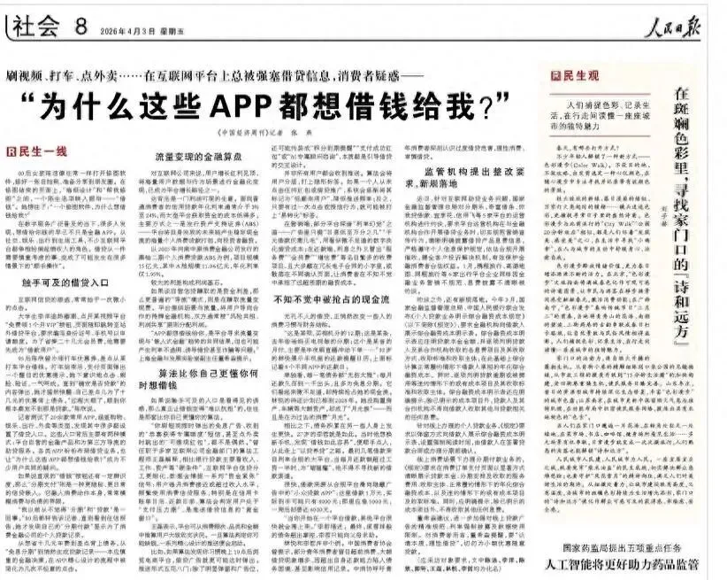 本文素材来源于《人民日报》(2026年4月3日第8版)《为什么这些APP都想借钱给我?》