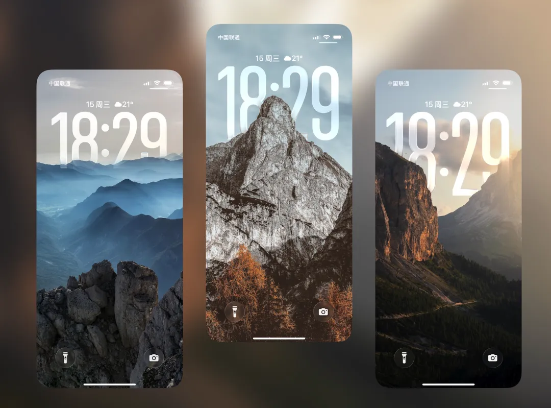 既然锁屏拥有了深度,那么在画面的选择上,就极考验个人品味了。经过多番挑选,我发现自带强烈纵深感和丰富层次的山脉风光壁纸,与 iOS 26 景深效果的匹配度最高。相较于容易因为边缘识别不清产生“穿帮感”的人像,自然风光,尤其是远景和近景层次分明的山脉与云海,为算法提供了最佳的施展空间。