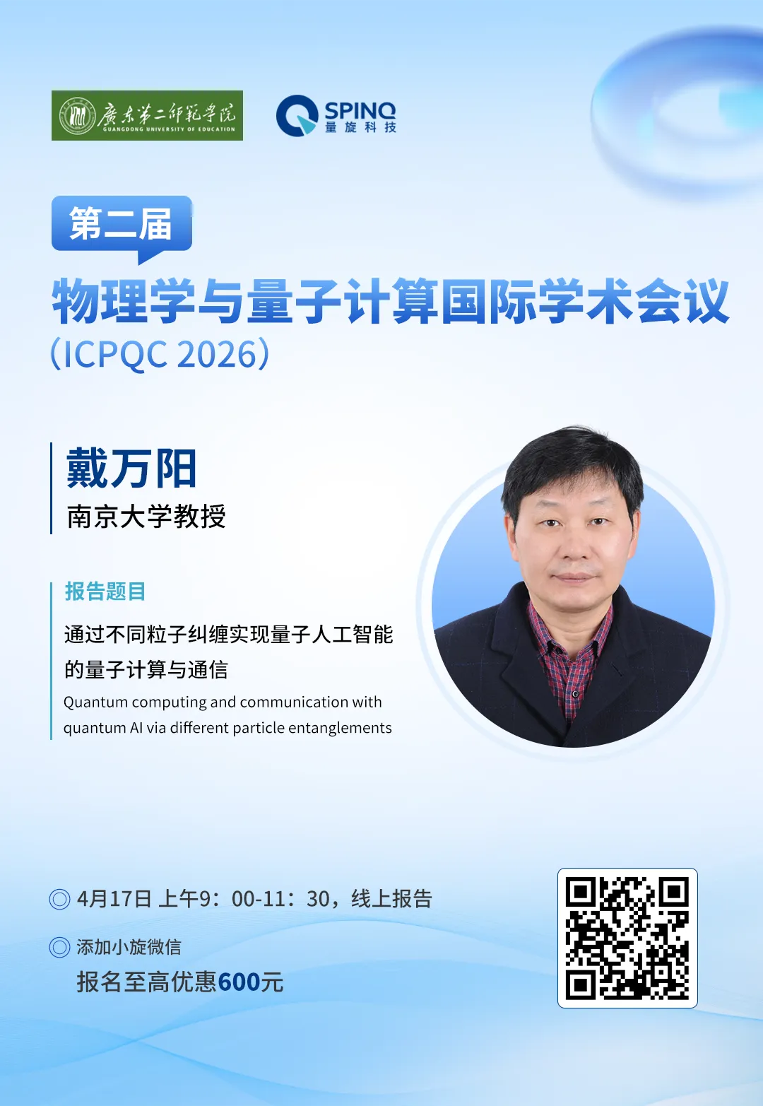 第二届物理学与量子计算国际学术会议(ICPQC 2026)由广东第二师范学院主办,广东第二师范学院物理与信息工程学院承办,量旋科技联合协办。汇聚各方学术积累和行业资源,共同打造专业化的全球学者学术交流平台。