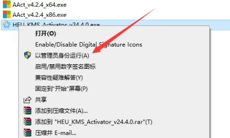 7.右键以管理员身份运行【HEU_KMS】激活工具。