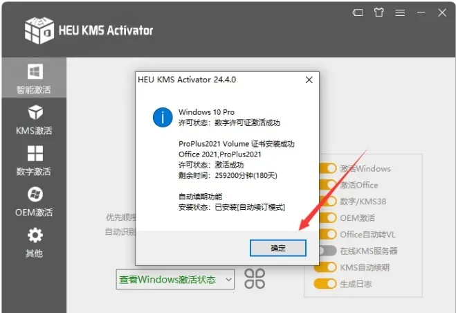 激活成功,点击确定。