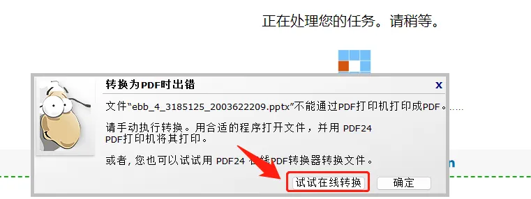 注意:如果离线版转化不成功,会提示“跳转到在线转化”,在线功能可能更强大(也是免费的),终究会给你搞定