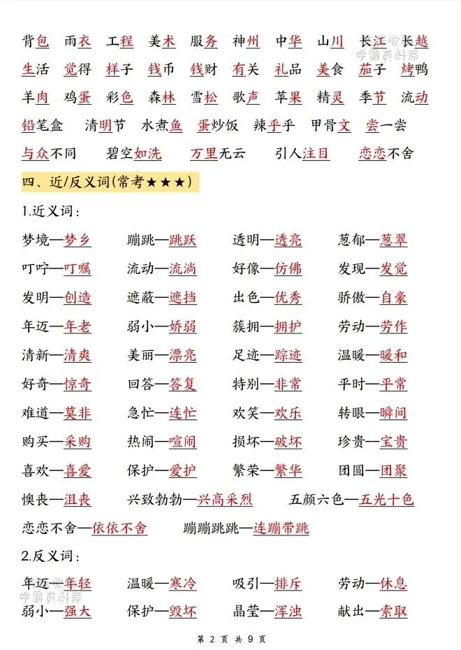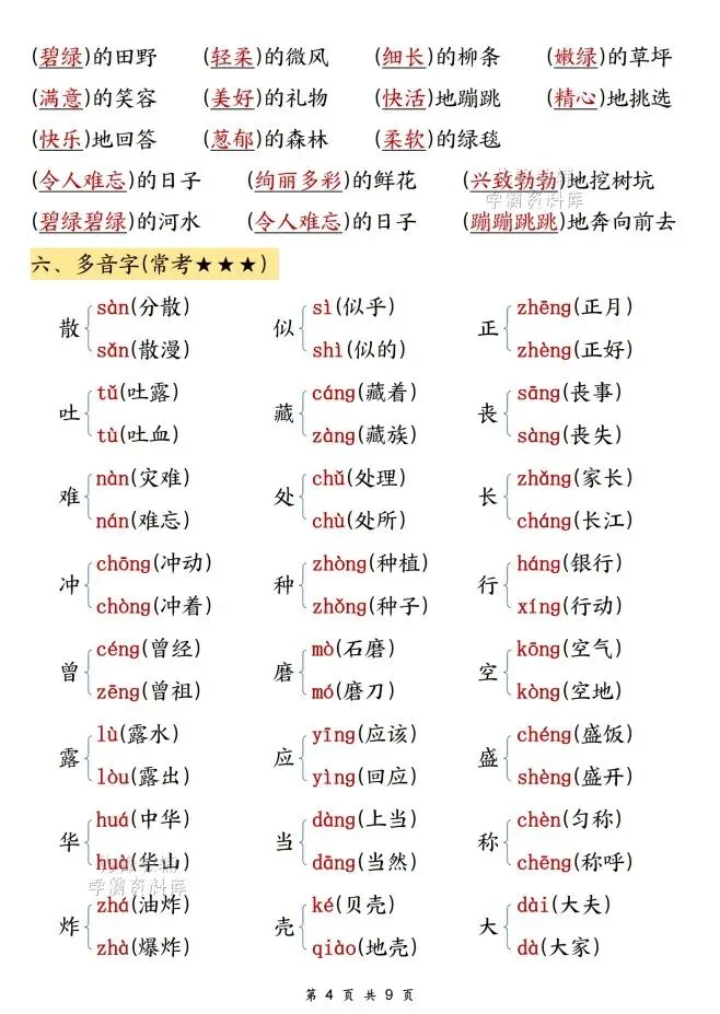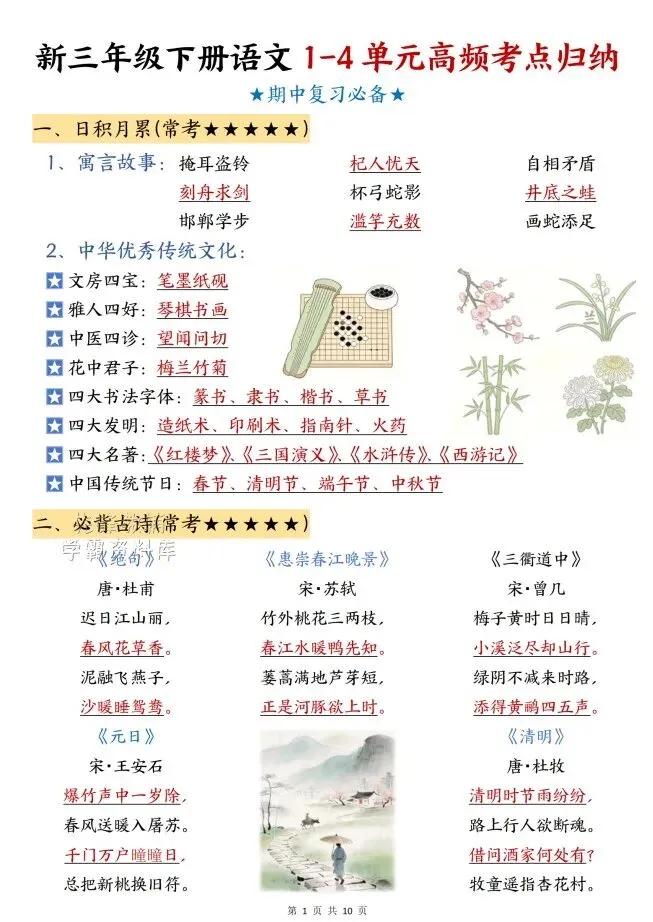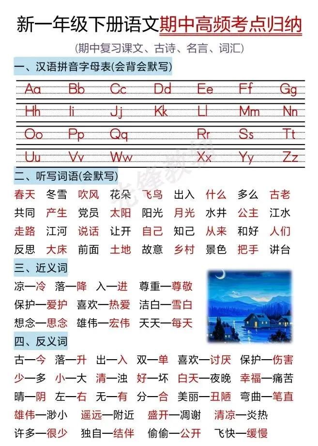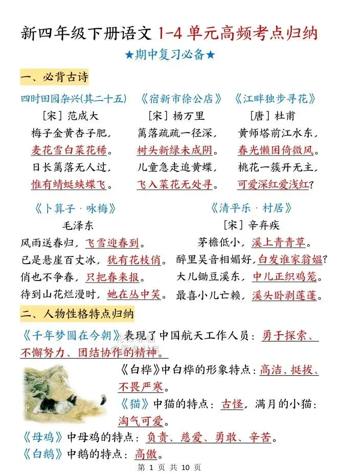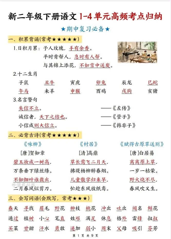今天给大家整理了26春语文期中高频考点归纳1-4年级,转发给朋友或班级群,受益更多人,帮助孩子学习!