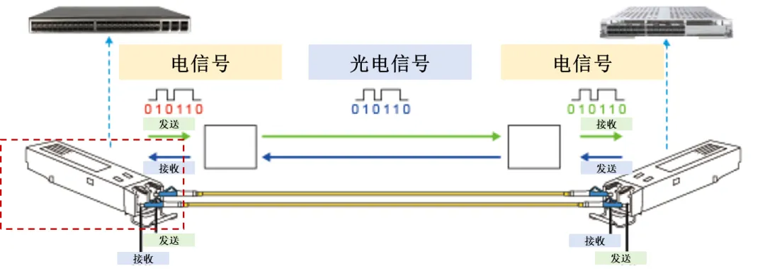 服务器、交换机之间要传海量信息,电信号传不远、速度慢,光模块就负责把电信号转成光信号,通过光纤高速传输;到了接收端再把光信号转回电信号,让数据快速、低损耗地传递。