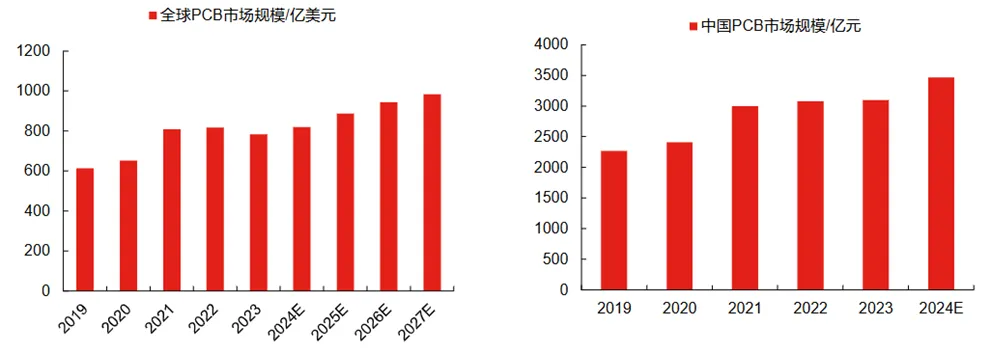 市场规模方面,到 2027 年全球 PCB 市场规模将达到 984 亿美元,未来 8 年复合增速约 6%;