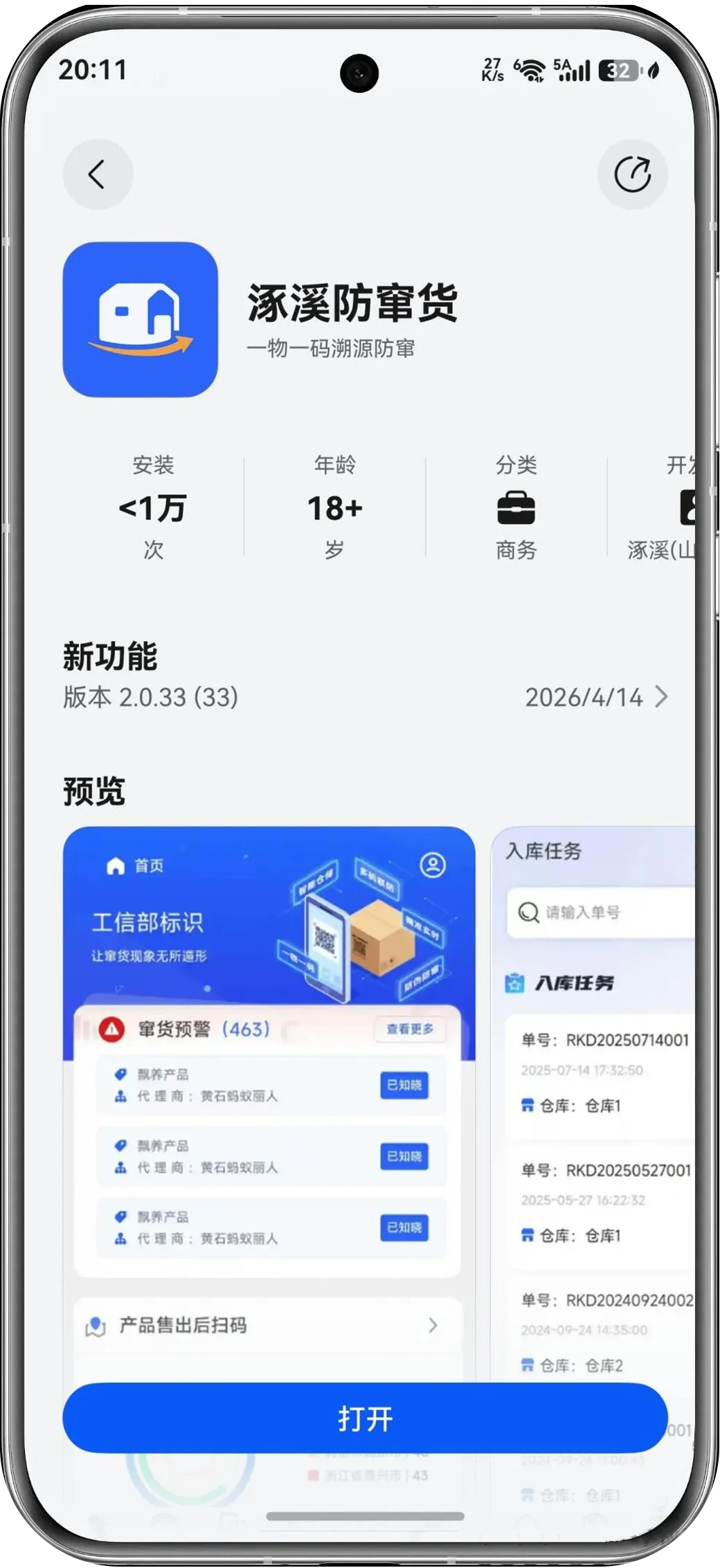 涿溪防窜货APP已在鸿蒙应用市场上线,搜索“涿溪防窜货”免费下载体验。