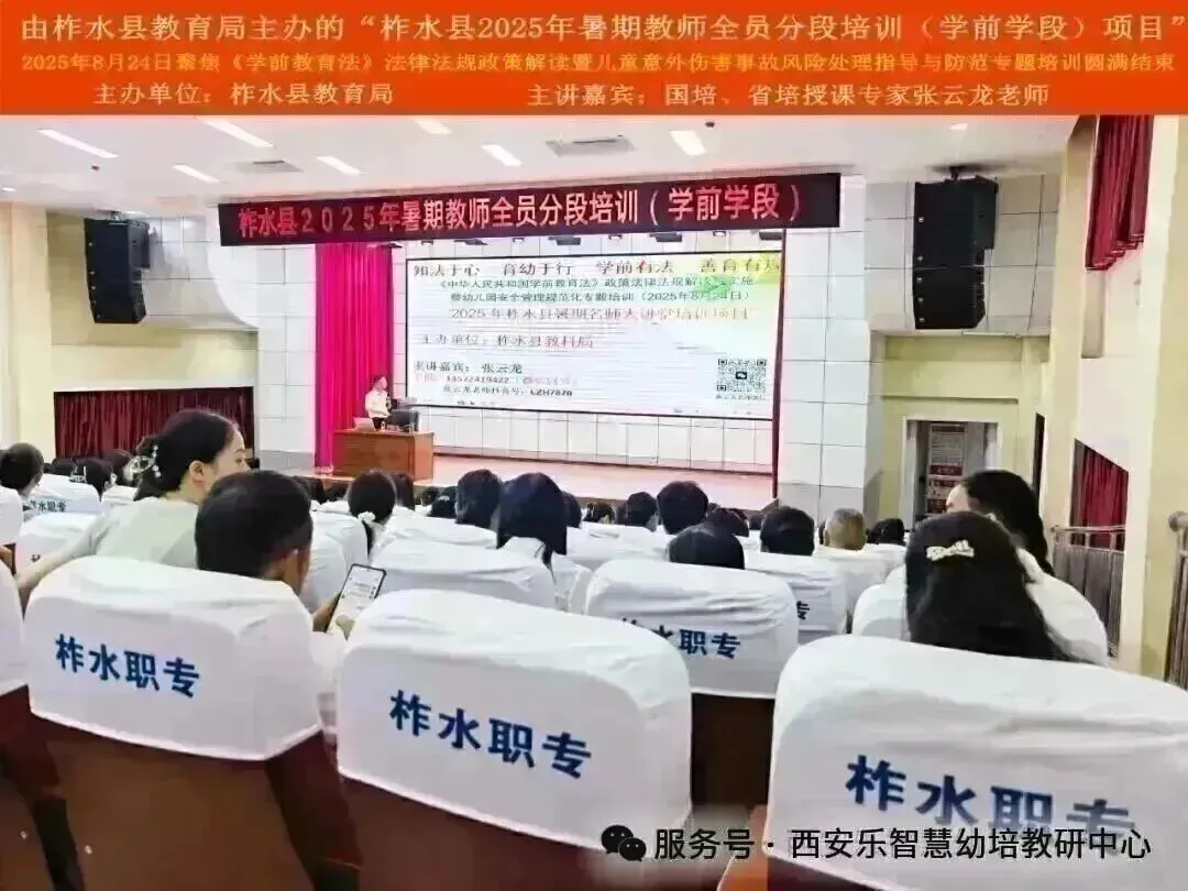 2025年8月22日-25日由柞水县教育局主办的“柞水县2025年暑期教师全员分段培训(学前学段)、暑期名师大讲堂培训项目”-2025年8月24日聚焦《学前教育法》法律法规政策解读与实施暨儿童意外伤害事故风险处理指导与防范专题培训圆满结束!