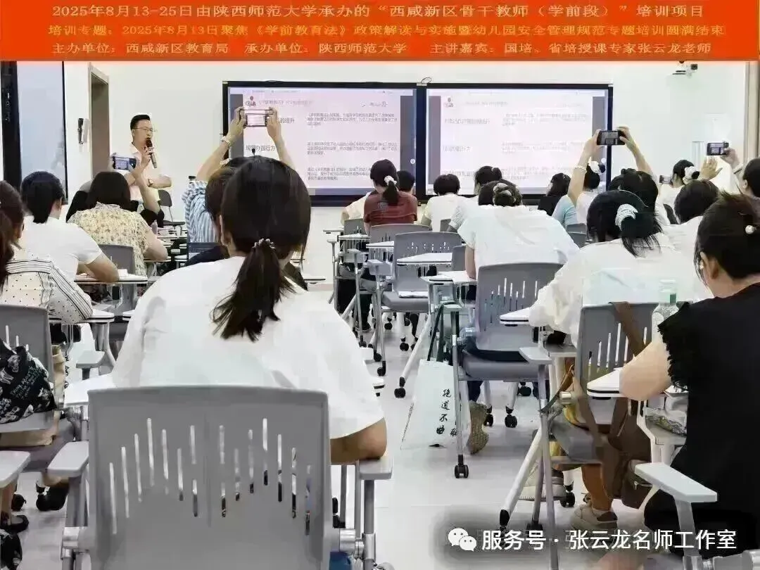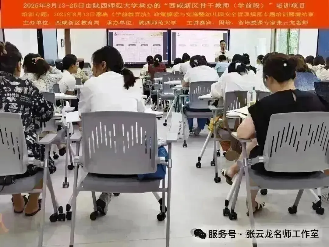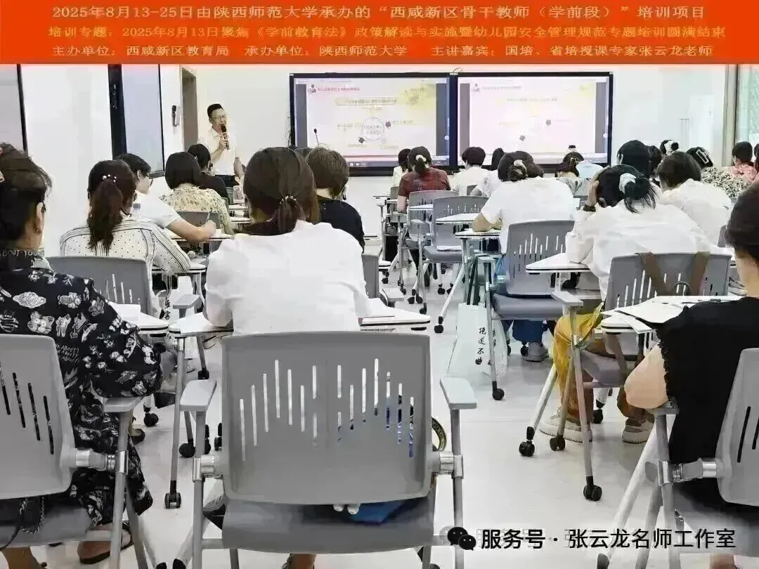 2025年8月13日-25日由陕西师范大学承办的“西咸新区骨干教师(学前段)能力提升培训项目”-2025年8月13日《学前教育法》法律法规政策解读与实施暨儿童意外伤害事故风险处理指导与防范专题培训圆满结束!
