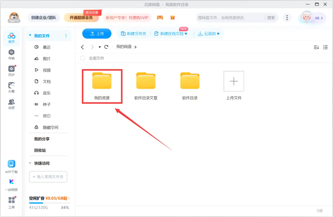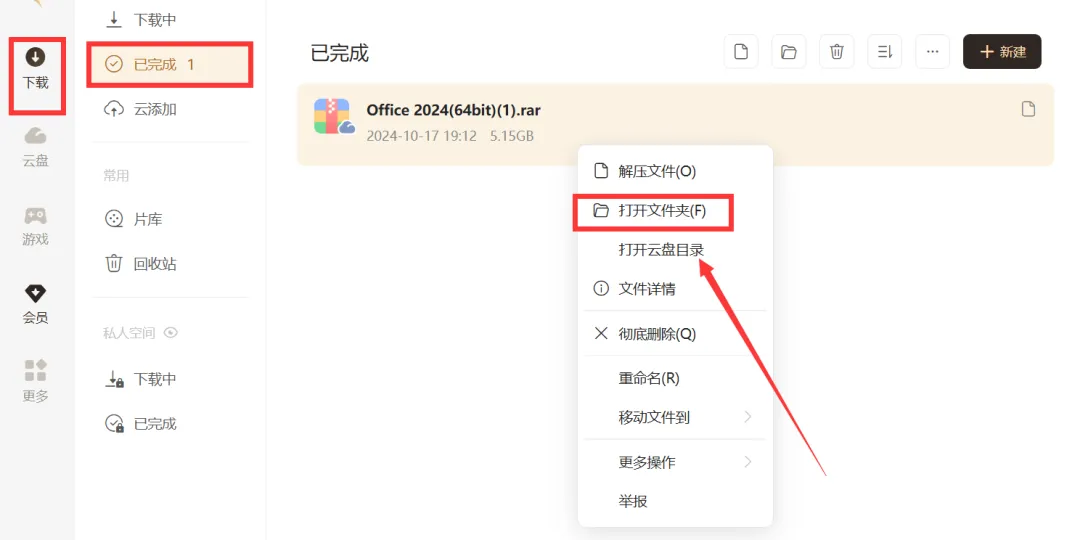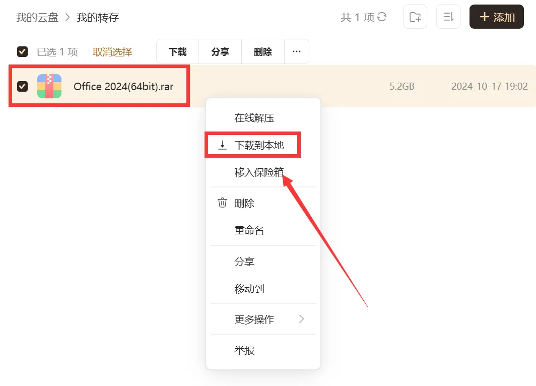 电脑端安装网盘客户端,登录自己的账号,下载保存到自己网盘里的软件。