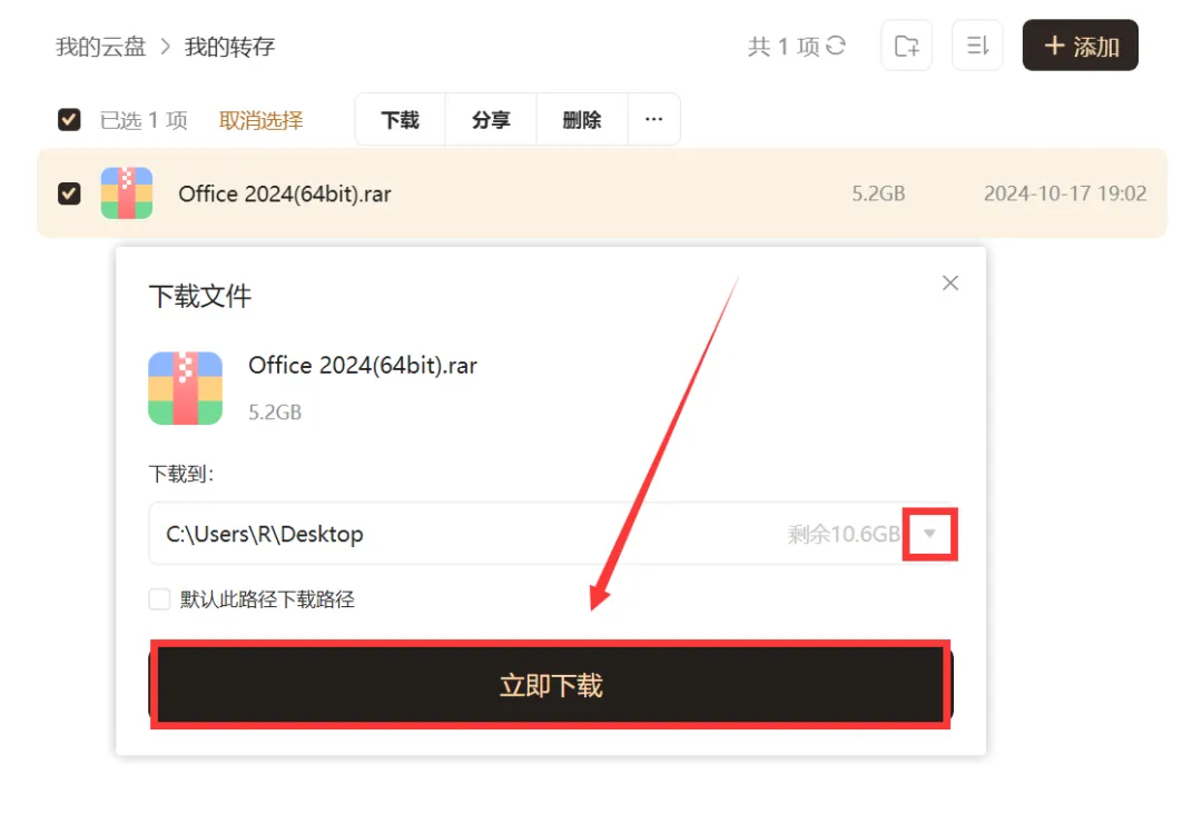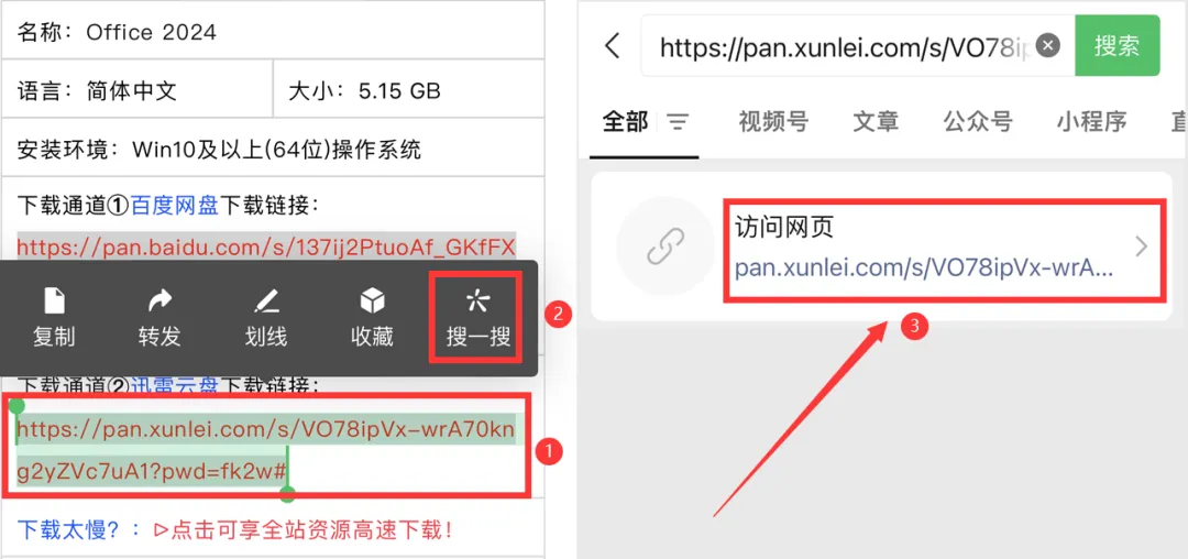 选择其中一个下载通道,点击下载链接或将下载链接复制到“手机/电脑浏览器”地址栏中打开,将安装包保存到自己的网盘。