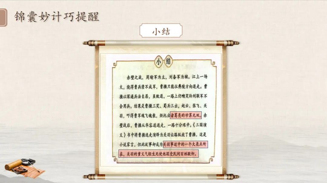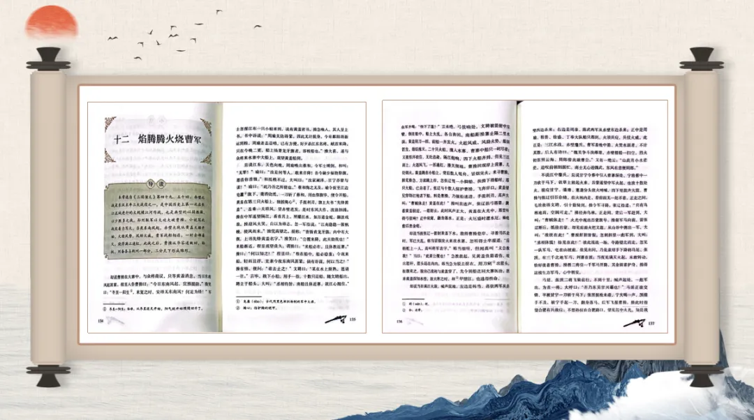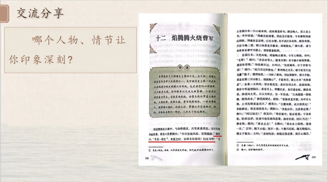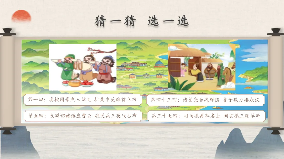 三、AI章回地图可视化:把章回体名著读成“寻宝游戏”。袁力老师用一张“秘密地图”,让学生通过猜图、认回目,快速熟悉了桃园三结义、草船借箭等经典情节。1.技术要点:用AI生成章回体名著的“回目地图”,将文字回目转化为图片线索,引导学生通过细节猜测故事、发现章回体特点。2.教学价值:降低学生对章回体结构的理解难度,让梳理情节的过程像“寻宝”一样有趣。