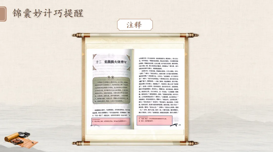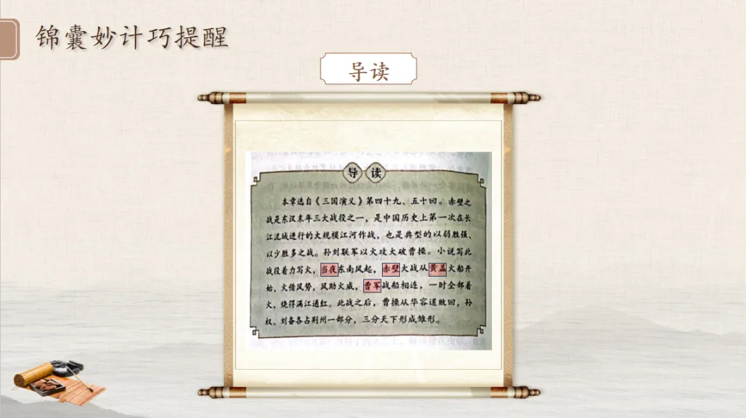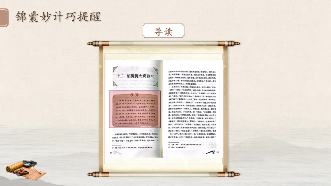 四、AI阅读支架提炼:帮学生抓住名著的“阅读密码”。在学生自主阅读前,教师引导学生发现导读、注释、插图、小结等文本中的“阅读锦囊”,这些方法都可以由AI快速提炼、整理。1.技术要点:用AI一键梳理名著的阅读辅助元素(导读、注释、插图、回目特点等),为学生搭建清晰的阅读支架。2.教学价值:教给学生可复制的阅读方法,让学生从“被动读” 转向“会读、善读”。