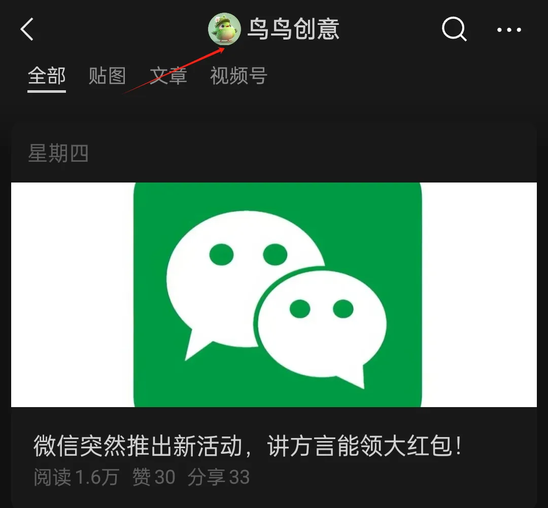 升级到iOS微信8.0.71正式版后,在公众账号主页下滑页面时,顶部的公众号名称左侧能显示账号头像,辨识度大大提高。