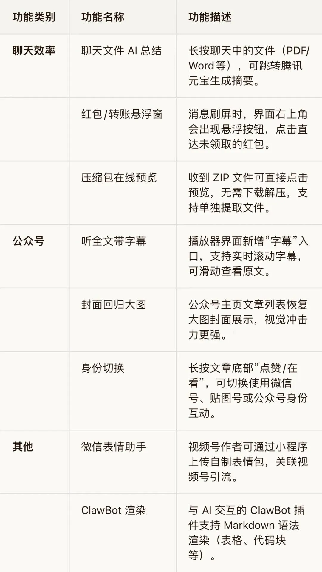 ❸Markdown 支持:仅限于ClawBot(AI 插件)消息界面,支持渲染加粗、列表、代码块等排版,普通聊天不支持。