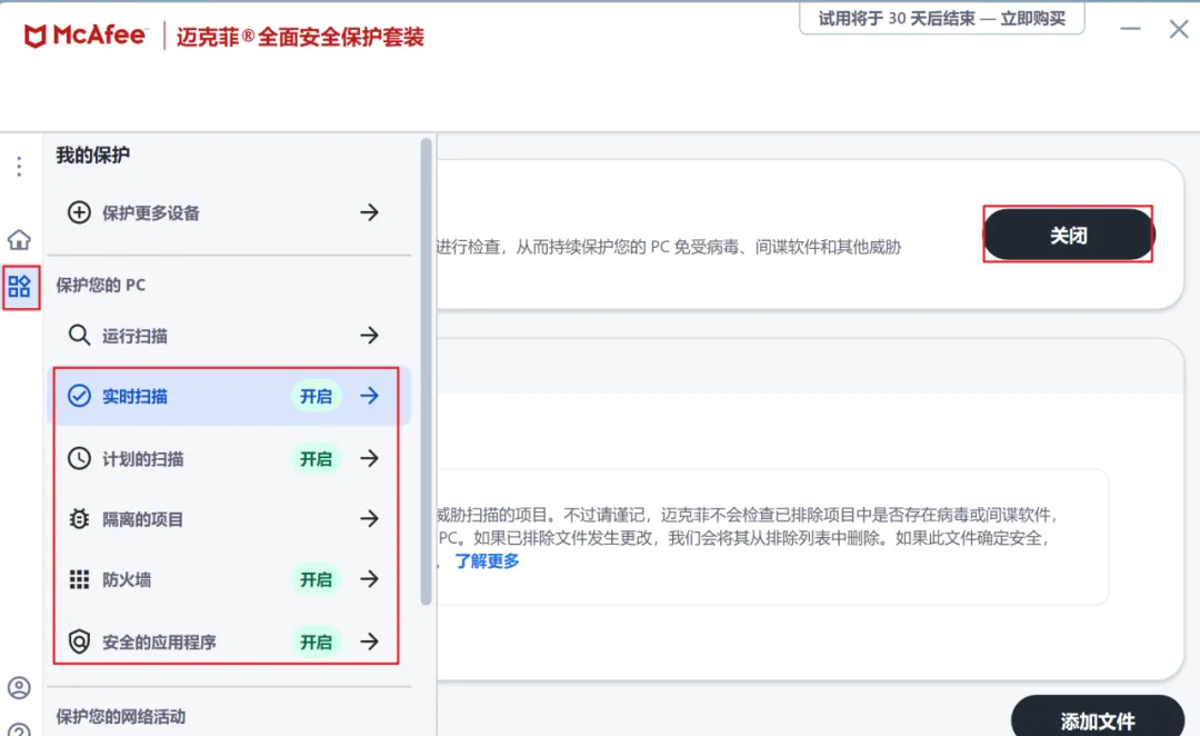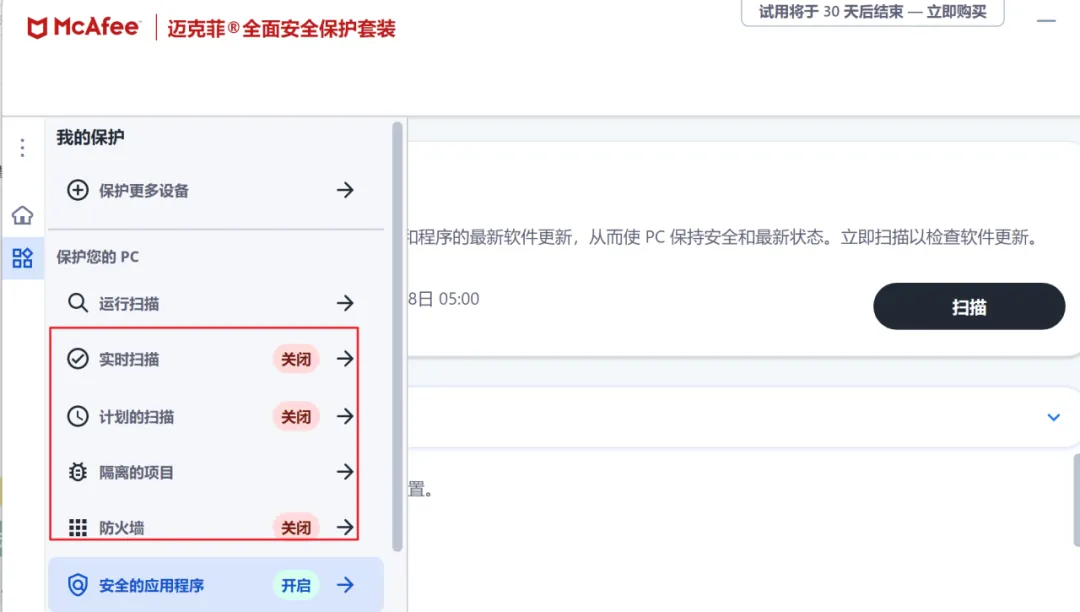 部分电脑买来的时候,由厂家自带的杀毒软件“迈克菲/McAfee”,很难关闭,该软件有着“宁肯错杀、不肯放过”的超强安全防护优势,同时也造成电脑卡顿无比、程序寸步难行的劣势,若不是国家级的防护要求,一般建议卸载卸载。