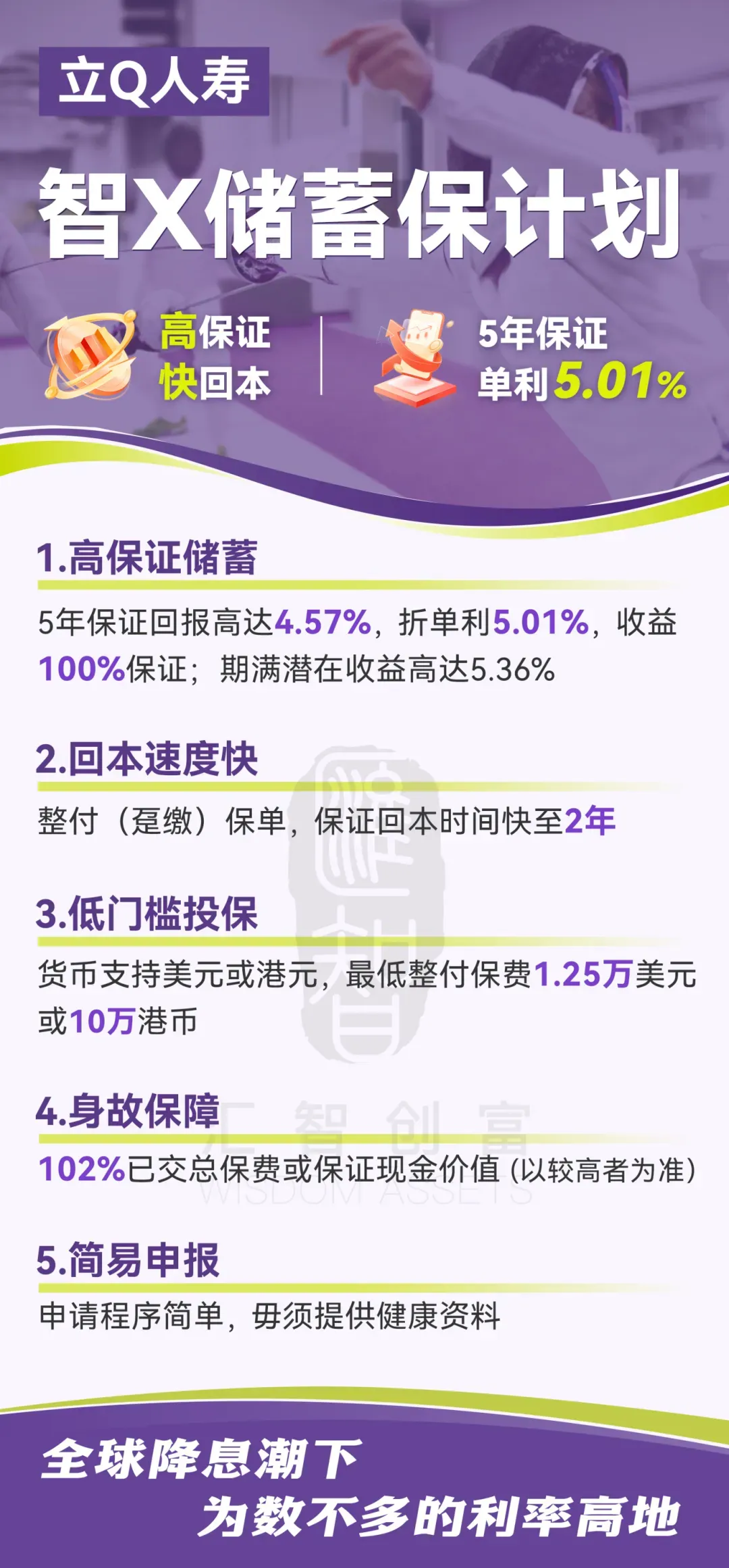 最快2年回本,5年保证单利5%+,立Q最近的新品,智X储蓄保卖爆了!参阅:《内地1年定期下破1%!香港爆款储蓄5年保证年化5%+》