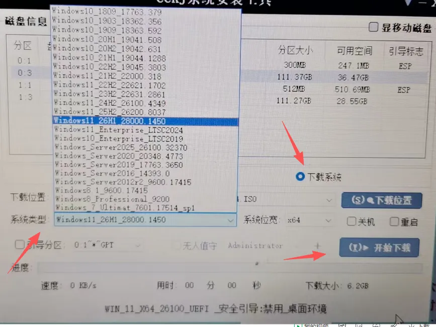 选择下载位置正常我们放在D盘E盘除C盘以外的盘就可以,这个系统类型支持这边是X64位和X86位,我们现在一般都是大内存,选择64位有win 101809190322 H2.25H2。系统从WIN7到WIN8,WIN10 WIN11系统,一应俱全。