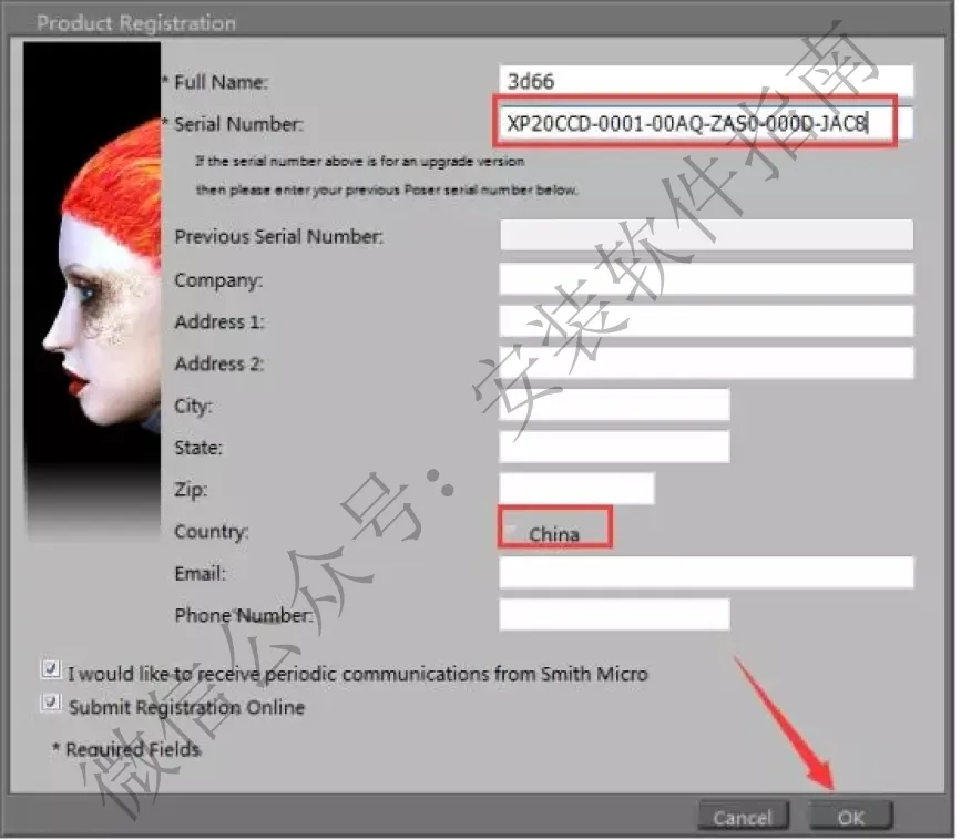 14.打开poser2010把序列号粘贴进去,选择China,点ok。