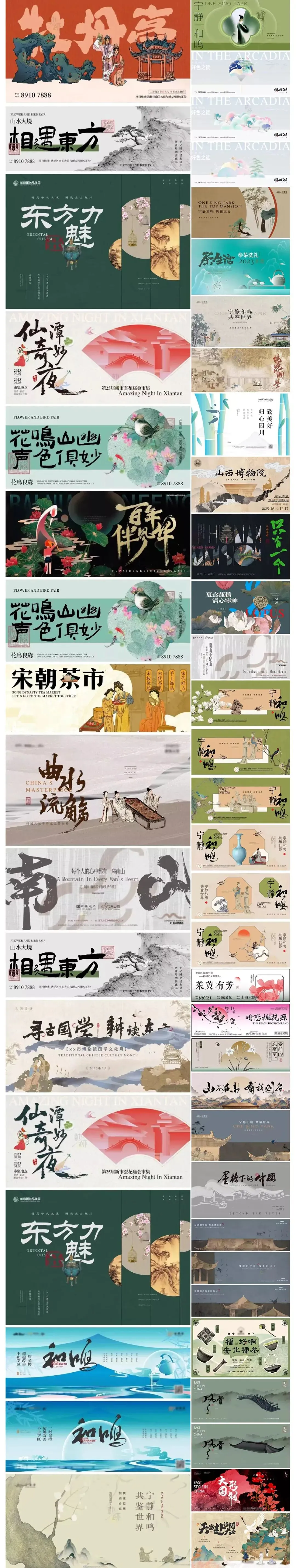 国潮中式中国风复古展板横海报背景素材模板