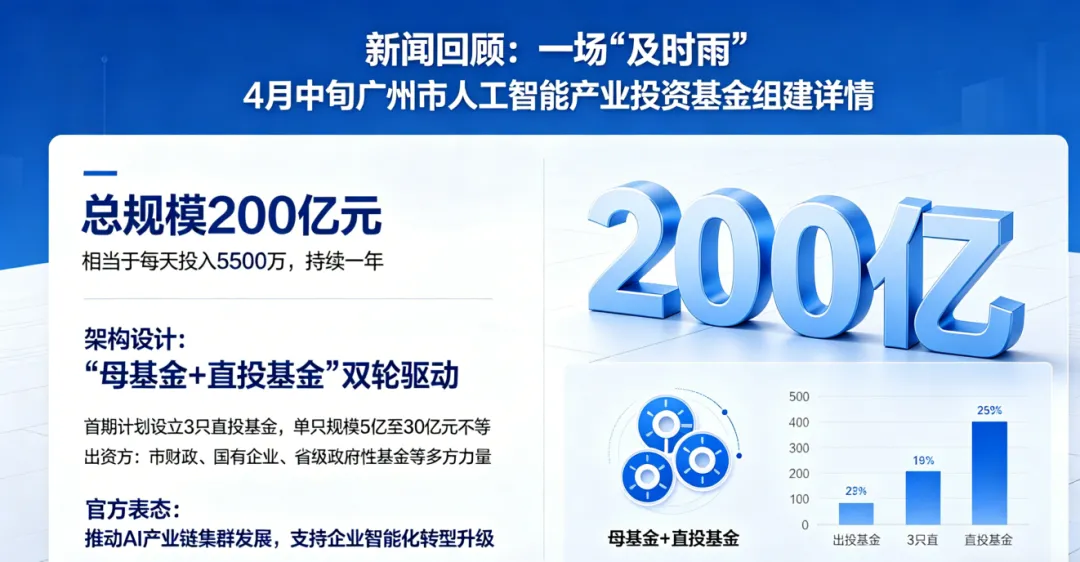 4 月中旬,广州市正式宣布组建人工智能产业投资基金,总规模200 亿元。这个数字是什么概念?相当于每天投入 5500 万,持续一年。