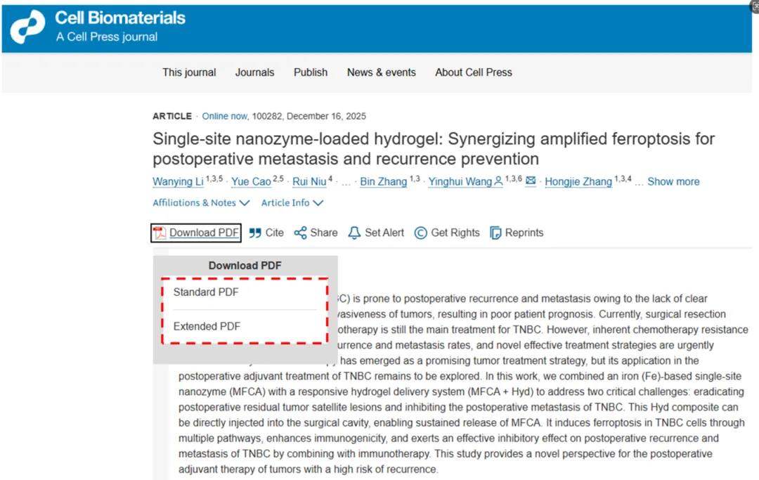 ▲ 图1|Cell Press 文章下载区域,可看到 Standard PDF 与 Extended PDF 两个选项