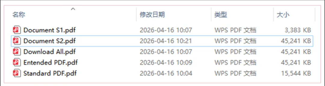 ⚠️ 以上结论基于实测对比,不同文章的补充材料结构可能略有差异。部分文章可能有多个 Document(S1、S2、S3……)或多个 Data 文件,它们的内容分配可能不同。