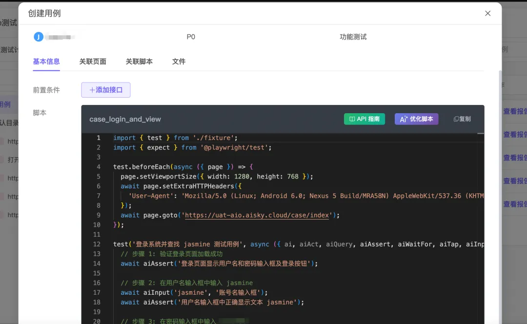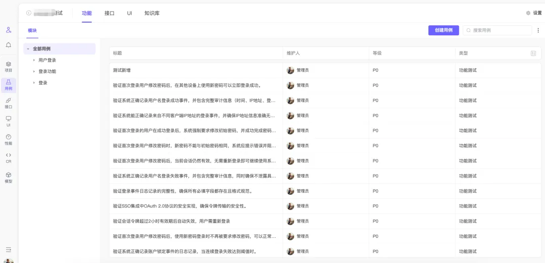 用例管理:功能用例、接口用例、UI用例统一管理,支持AI创建用例