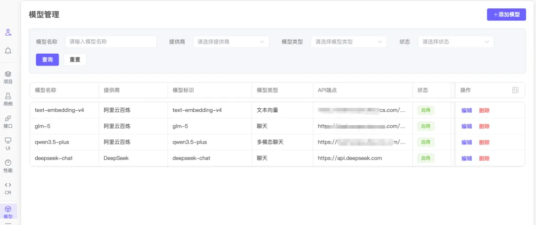 模型管理:多模型接入与管理(glm-5、qwen3.5-plus、deepseek-chat)
