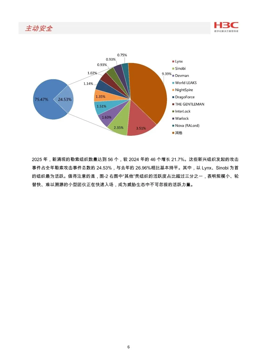 在网络威胁持续演变的背景下,2025年勒索软件攻击态势加速演进。攻击活动整体保持高位运行,但攻防双方的博弈格局与犯罪生态的内在逻辑正发生结构性转变。一方面,攻击数量持续攀升,勒索组织的技术手段与商业模式不断迭代;另一方面,防御体系的完善与执法行动的深化正重塑受害者的应对策略,迫使攻击者调整其获利逻辑。新华三聆风实验室通过对全球勒索攻击活动的长期跟踪与深度剖析,总结2025年勒索攻击的主要特点如下: