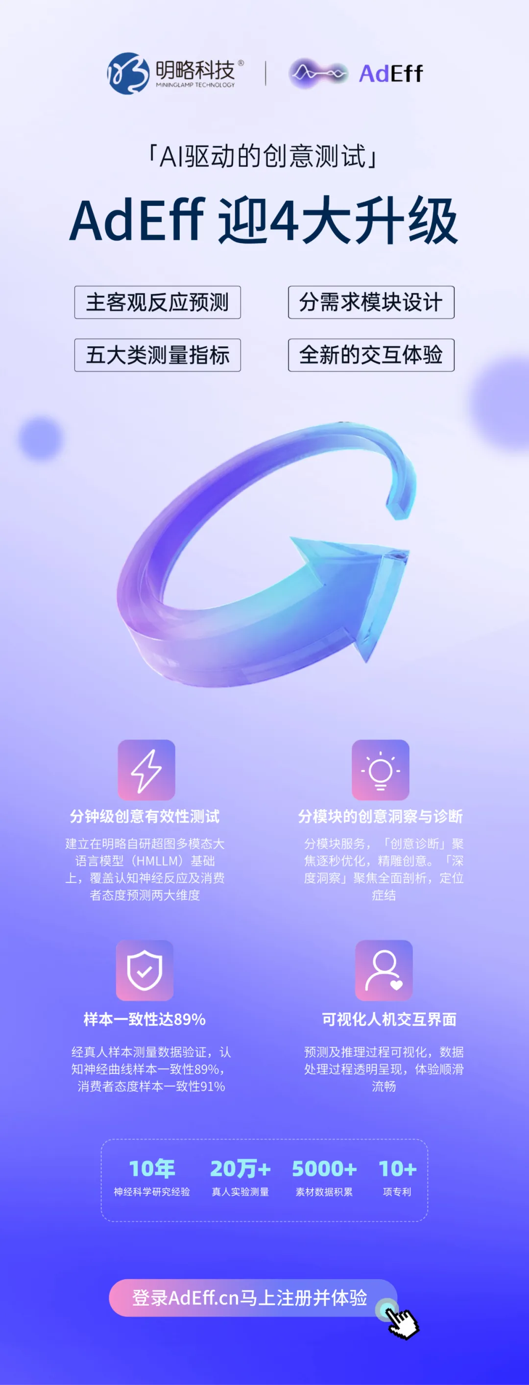 经过为期半年的开发和测试,日前,明略科技旗下全球化AI创意测试及筛选产品AdEff完成了发布以来的首次产品升级。