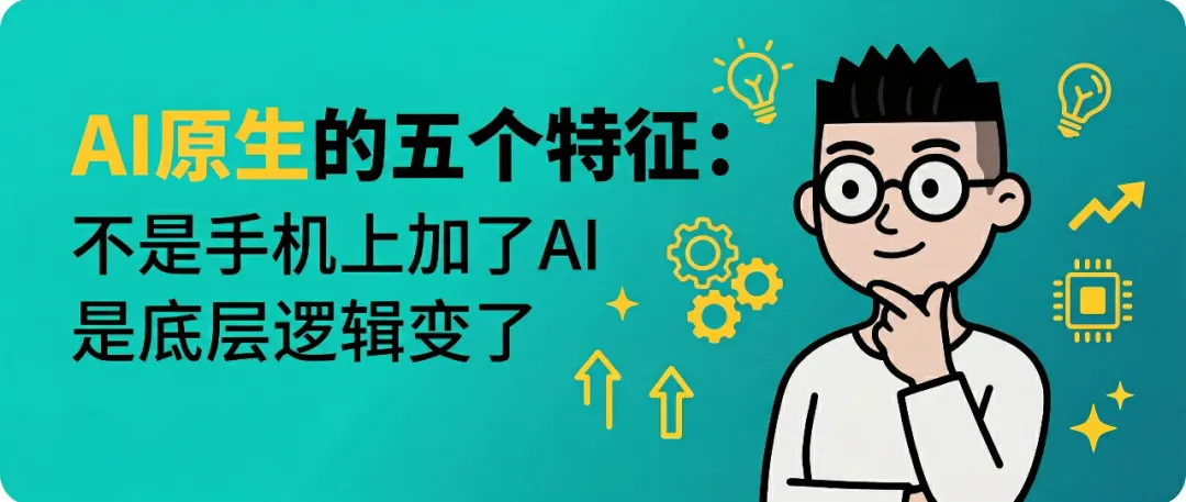 Mobile Native是把手机的独有能力发挥到极致。 AI Native是把AI的独有能力发挥到极致——理解意图、积累上下文、生成业务逻辑、自动调度技能、结果交付。 这五个特征共同构成了AI Native的完整图景。只用了其中一两个的产品,是AI-enhanced(AI增强),不是AI Native。 下次再有人拿着加了个对话框的APP说“这是AI Native”,你知道该怎么回了。 对照这五条,你现在每天在用的工具,哪个算AI Native?哪个是披着AI外衣的Mobile Native?发个朋友圈说说你的判断,我来帮你把关。 大家如果喜欢我的文章,顺便点下「在看」和「赞」,这篇写得比较硬核,能看到这里的都是真爱,谢谢啦。
