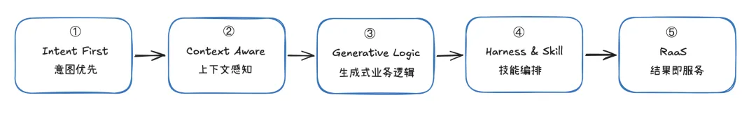 05 Result-as-a-Service(结果即服务) 移动互联网二十年,所有产品都在抢你的时间。AI Native第一次说: 我不要你的时间。 Mobile Native的商业模式是 Engagement(时长) :产品的KPI是你用了多久。抖音希望你刷到凌晨,微博希望你永远刷热搜,小红书希望你一直种草。 你的注意力,是商品。 AI Native的商业模式是 Disengagement(解放) :产品的KPI是多快帮你解决问题然后让你离开。你越快离开,说明AI越高效。 你的时间,是商品。 你想知道“怎么去机场最快”。打开高德,查路线,顺便看了一眼附近加油站的优惠,又刷了一会儿本地热搜。3分钟过去了,信息是查到了,但时间也没了。 AI Native:你问“怎么去机场最快”。AI说:“现在东三环堵死,走机场二高速,35分钟到。我已经帮你预约了3点出发的专车。” 对话结束。5秒钟。 判断标准:如果一个产品还在想办法留住你,它就不是AI Native。 AI Native的产品,把时间还给你。它赚的是帮你省下时间之后,你愿意分给它的那一部分价值。 AI按需写代码、调工具 App-Centric(以应用为中心) Harness动态编排多个Skill,跨应用跨平台协同执行,用户只看结果 解放你的时间,只看结果,Result as a Service