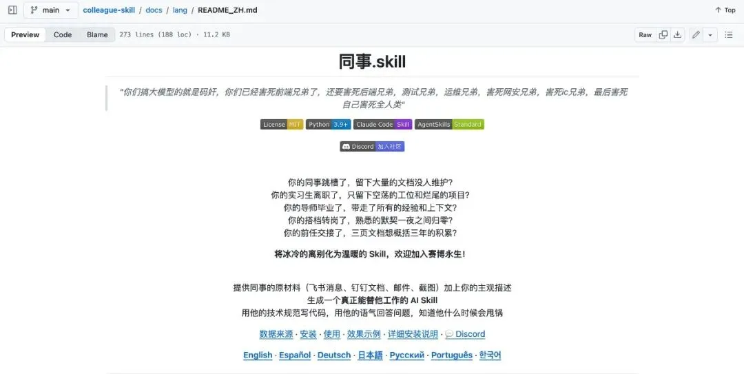 关于“同事.Skill”这个项目的蝴蝶效应,作者无法准确预判,它只用了4个多小时就搭建完成,上线10天内在GitHub获得了“1万多星”(Star,受欢迎程度指标)。