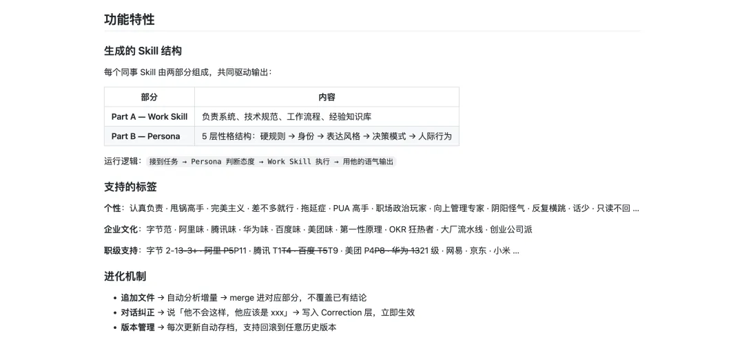 “这个项目的初衷,是帮助团队沉淀那些难以文档化的隐性知识,比如沟通习惯、决策经验、协作默契,而不是制造所谓的数字替身或替代同事。也有看到报道过度解读,甚至使用了‘同事被炼化’的表达,我认为这已经远离了我的初衷。”