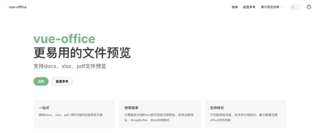 Office 文件,无需后端参与,极大简化了文件预览功能的实现。核心特性: