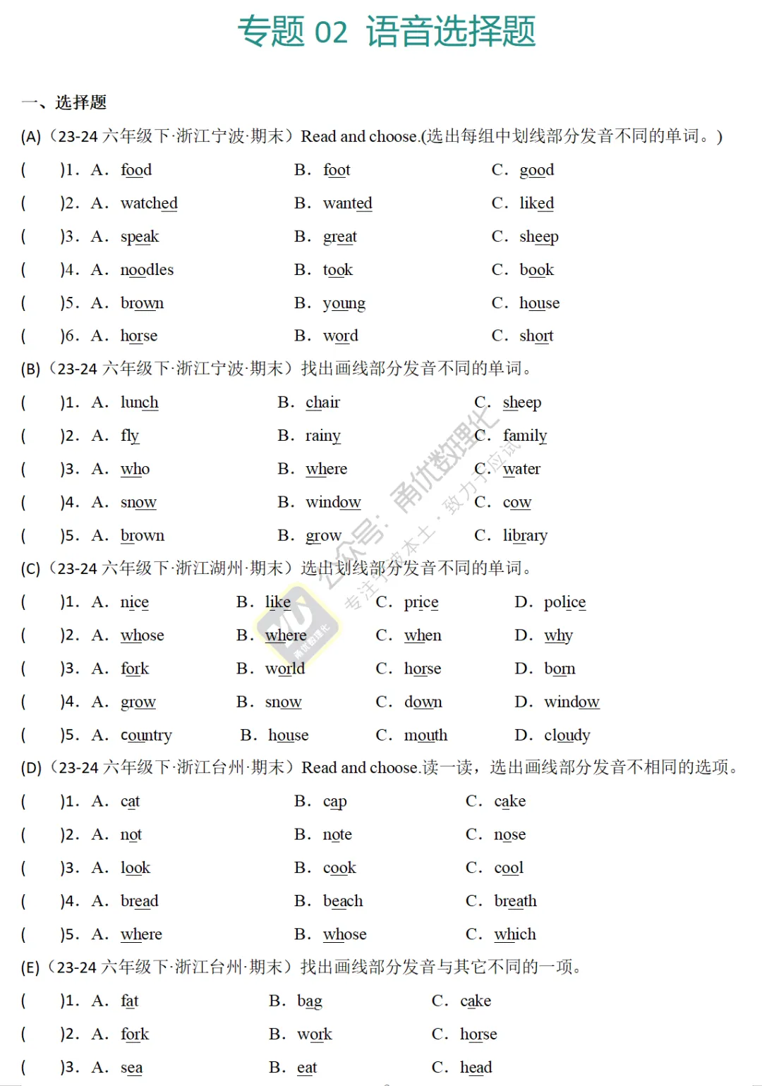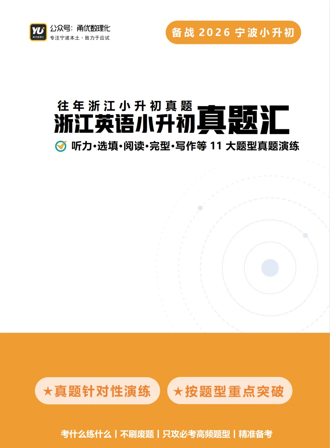 这是针对2026年宁波小升初英语备考的一份非常好的资料,是是往年浙江省各个地方小升初英语真题的分类汇编,按照题型共分为11个专题,每题都有详细的答案解析,听力部分的训练附有听力材料和原文。