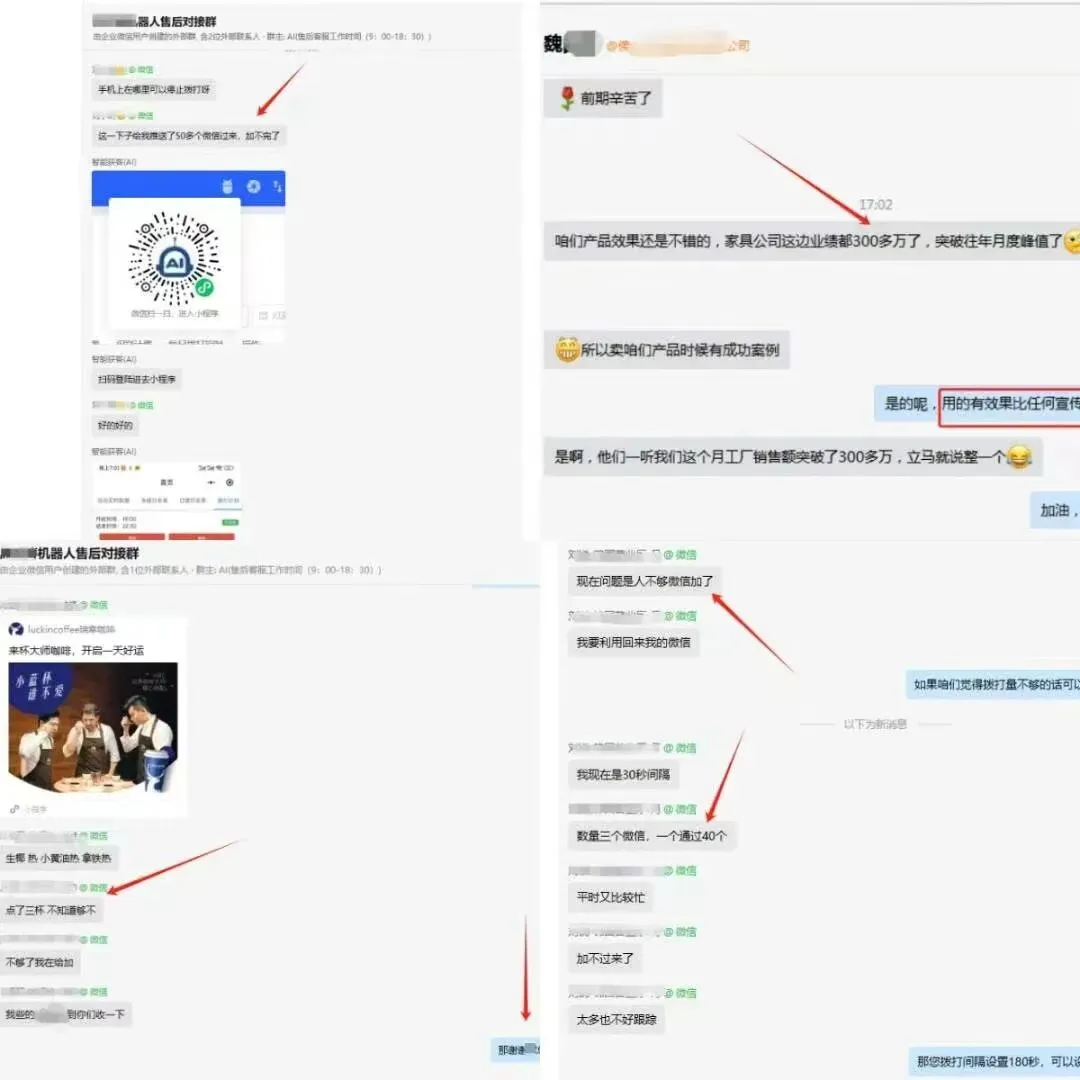 3、售后好,每个客户一个专门的用户群,和技术多对一服务,所有的操作问题随时都可以得到解决。后台定期巡查,关键词、话术优化,提高机器人效果,打造量身定制的企业话术。