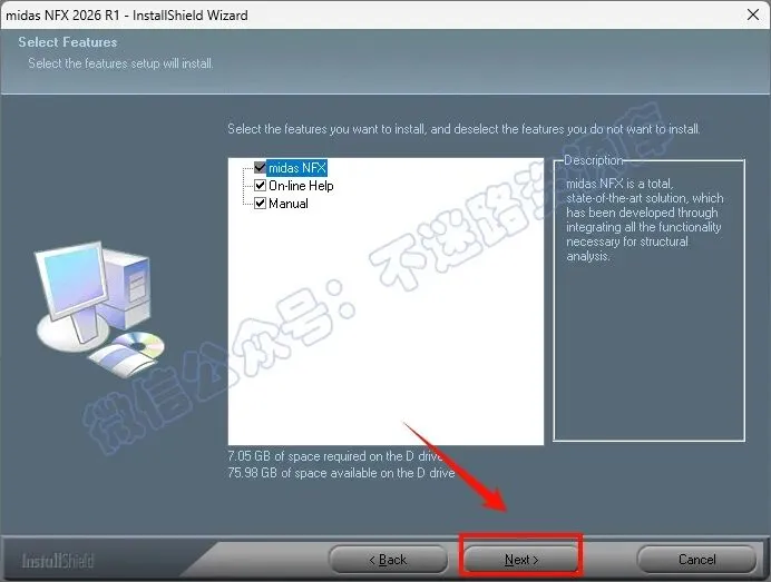 11.选择软件安装路径,建议和教程中的保持一致,本例安装到D盘(将路径地址中的首字符C改为D表示安装到D盘,安装路径不要出现中文),点击“Next”