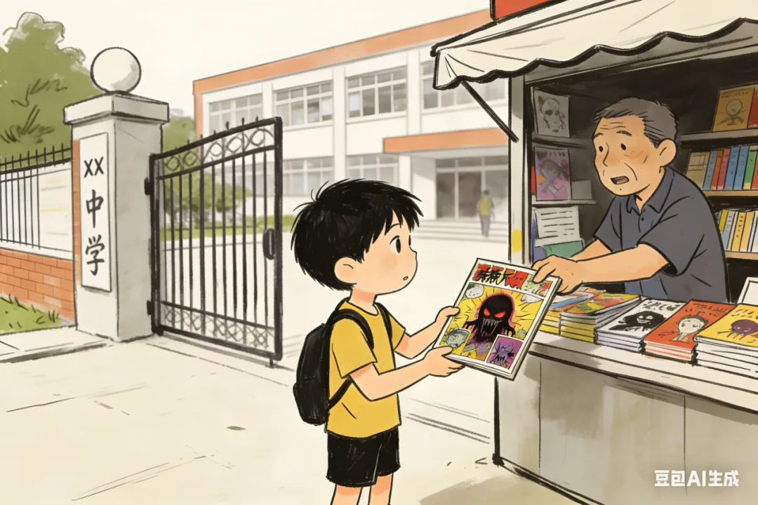 孩子从学校门口小摊买到的一本漫画