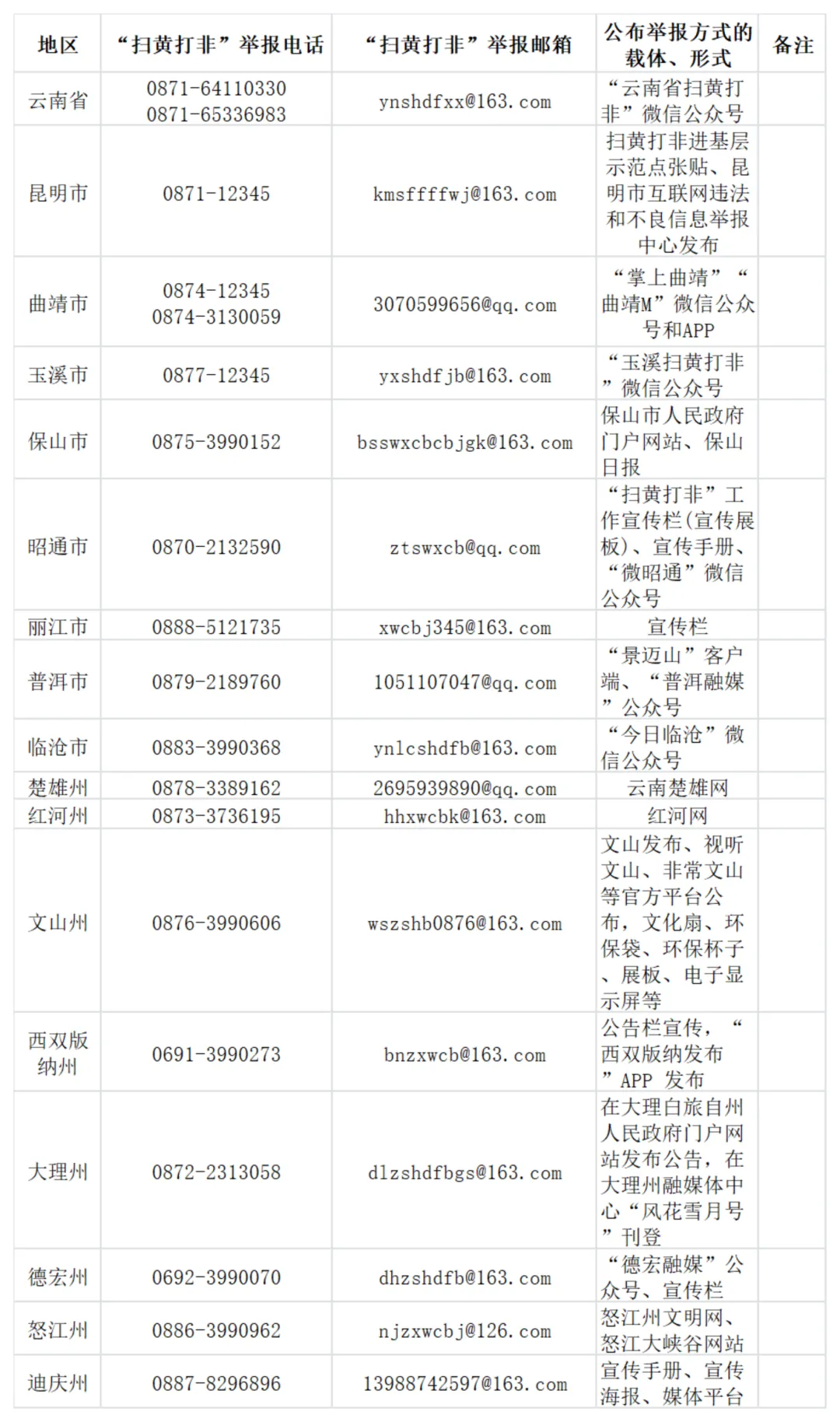 云南省“扫黄打非”举报方式如下