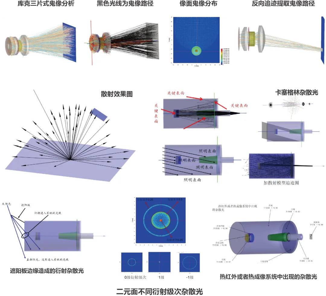 软件能够在仪器加工之前,通过高精度虚拟模型全面模拟和分析包括鬼像、衍射、散射及红外热辐射在内的各类杂散光现象,并提供了如路径分析和提取、自动筛选照明关键面等工具,为光学工程师提供从识别、评估到修正的一体化工具体系,从而在设计阶段有效消除杂散光干扰,保障光学系统的高精度与可靠性。