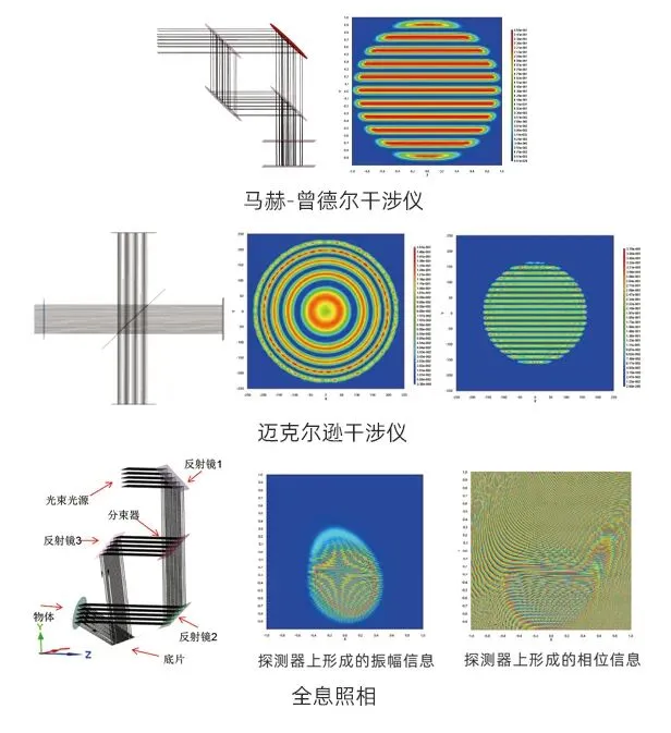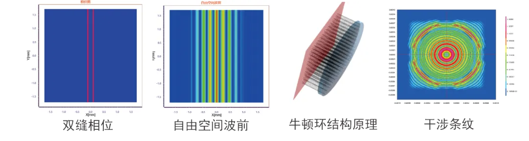 软件的干涉光学支持多种经典干涉实验模拟,包括杨氏双缝干涉、牛顿环、楔形玻璃等厚干涉、玻璃平板等倾干涉及迈克尔逊干涉仪,为光学系统设计与分析提供全面支持。