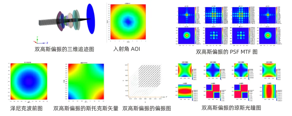 软件提供偏振光源与元件设置,涵盖理想线偏器件及真实偏振元件(如双折射晶体、液晶等)。提供膜层反射率/透射率分析,绘制s,p曲线及导纳圆图。支持偏振图、琼斯光瞳图、斯托克斯分析、庞加莱球等多种偏振分析工具,满足复杂光学系统的偏振特性评估与优化需求。