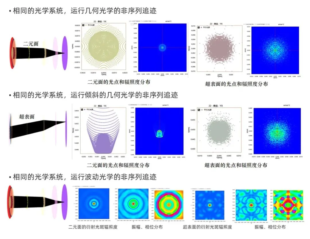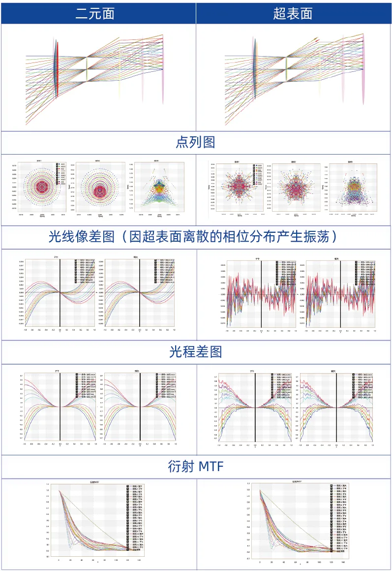 软件的折超混合解决方案以先进光学设计理念为指引,深度融合超透镜结构分布与光学追迹分析,通过精准计算电场分布,实现对折超光学系统追迹及成像性能分析 ,为光学系统设计、优化及性能评估提供高效且精准的全流程技术支撑,助力突破传统光学设计局限,在复杂光学系统研发场景中构建核心技术优势 。