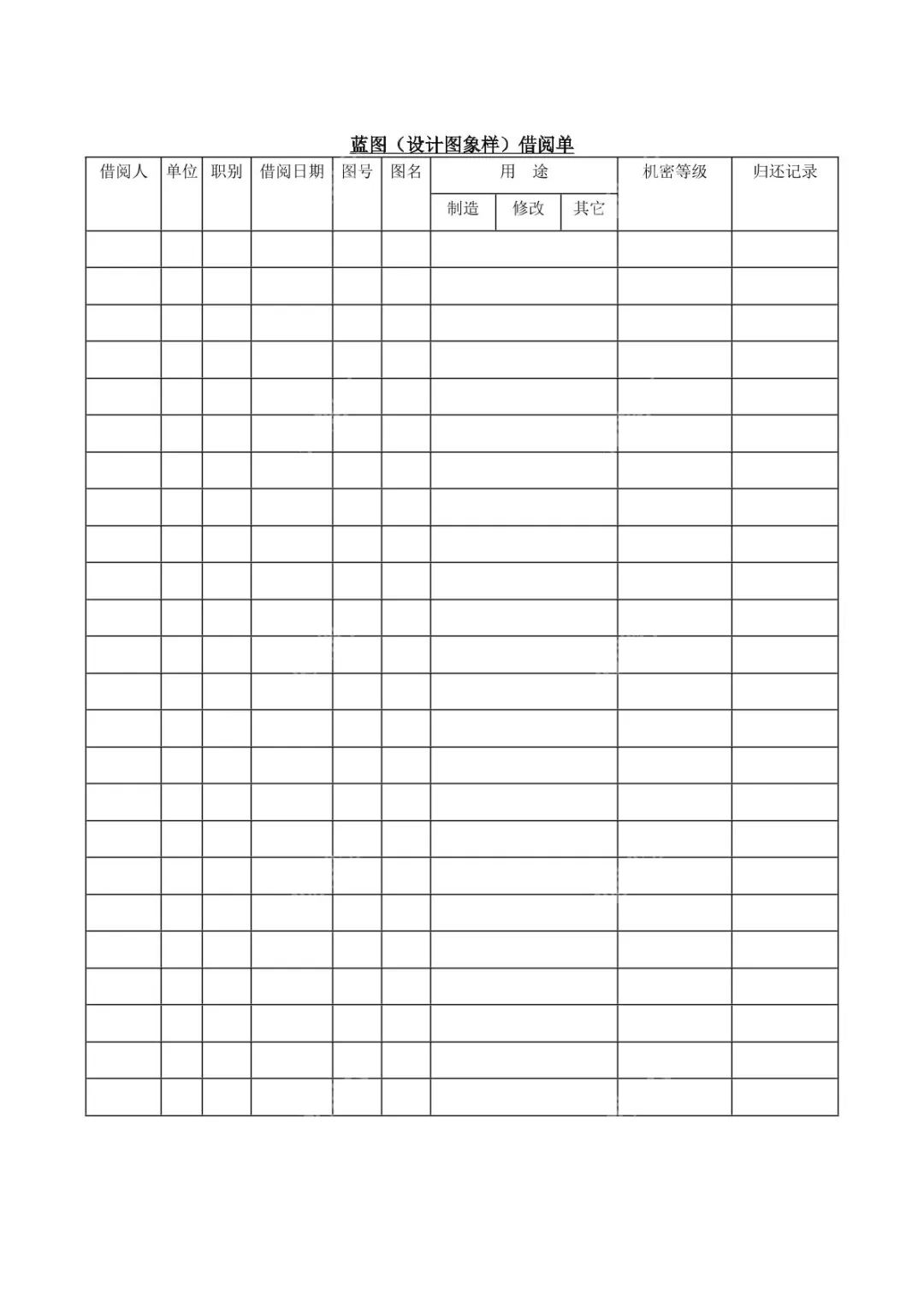 对于制造、工程、建筑等多个依赖设计图纸的行业来说,规范的设计图纸借阅管理是保障图纸安全、避免资料流失、管控核心机密的关键环节,很多企业都因为缺乏标准化的登记流程,出现过图纸丢失、机密外泄、归还无记录等管理问题。一款专业的标准化蓝图(设计图象样)借阅单模板,能帮企业快速梳理设计图纸借阅管理流程,解决登记混乱的痛点。这款标准化蓝图(设计图象样)借阅单模板采用清晰的黑白表格样式,整体排版工整规范,预留了充足的空白填写区域,适配绝大多数企业的图纸借阅登记需求。模板顶部明确标注“蓝图(设计图象样)借阅单”标题,表头登记项设置逻辑清晰、覆盖借阅全流程的核心信息:不仅包含基础的借阅人信息栏,细分了借阅人姓名、所属单位、岗位职别、借阅日期等关键信息,方便后续追溯借阅责任人;还设置了图号、图名专属登记栏,匹配设计图纸的分类管理规则,能快速定位对应图纸。针对图纸用途,模板还特意做了细分优化,分为制造、修改、其它三个子选项,方便管理人员快速掌握借阅需求,提升管理效率。同时模板专门预留了机密等级、归还记录的登记区域,可以满足不同密级设计图纸的管控需求,清晰记录每一次借阅、归还的时间与状态,避免出现权责不清的问题。使用这款标准化蓝图(设计图象样)借阅单模板,可以帮助企业快速建立规范的设计图纸借阅制度,不管是日常蓝图借阅管理,还是核心机密图纸的管控,都能实现全流程可追溯,从细节处提升企业技术资料管理的规范性,降低图纸管理风险。