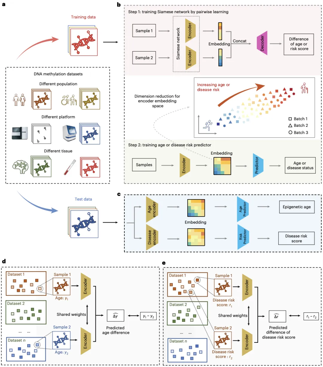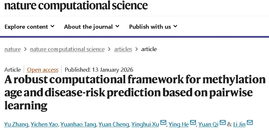 2026 年 1 月 13 日,复旦大学校长金力院士团队联合上海科学智能研究院 / 复旦大学人工智能创新与产业研究院漆远教授团队,以及无线光年的研究人员,在 Nature 子刊 Nature Computational Science 上发表研究论文《A robust computational framework for methylation age and disease-risk prediction based on pairwise learning》,为这一难题提供了新的解决方案。