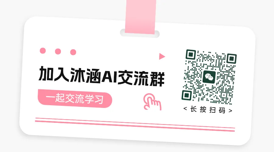 如果您也有兴趣学习AI知识,又不知道如何开始,欢迎你关注沐涵的公众号,学习AI知识少走弯路,不被割韭菜,是我的的初心。学习就AI知识就是“干中学”。有想交流的朋友可以扫码备注“AI”一起进群免费学习交流。