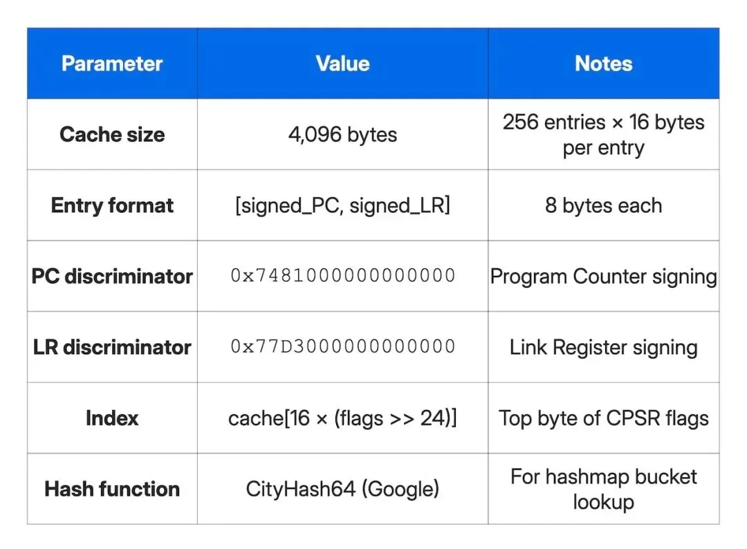 PC/LR独立鉴别器是苹果的纵深防御机制,Predator针对性适配;每个函数目标仅需执行512次高耗时remotePACIA调用,后续钩子回调均为零延迟缓存查询。