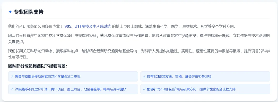 聚焦生物与医学领域,提供科学、系统的国自然项目申报支持,助力研究方案更具逻辑性与创新性。